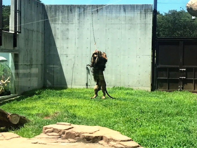 千葉市 千葉市動物公園 ミートキャッチャーによるライオンのエサやり